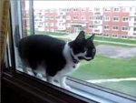 Kitty Trapped Between Glass